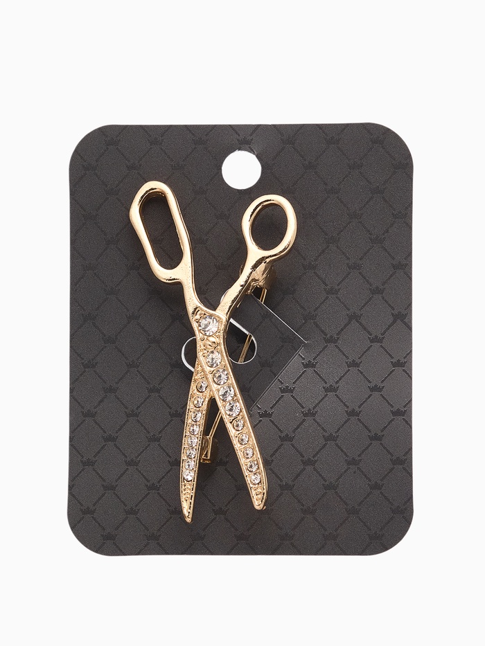 Брошь в форме ножниц, выполненная из металла с золотистым покрытием и белыми вставками со стразами, станет стильным акцентом в образе каждой женщины, ценящей оригинальность и профессионализм. Длина 6 см подчёркивает выразительность изделия, делая его заметным, но при этом элегантным аксессуаром.