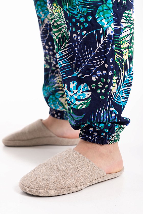 Брюки выполнены из мягкой хлопковой ткани. Модель с удобным поясом и манжетами на резинке обеспечивает комфортную посадку и свободу движений. По бокам брюки дополнены карманами. Универсальный вариант для повседневной носки и отдыха.