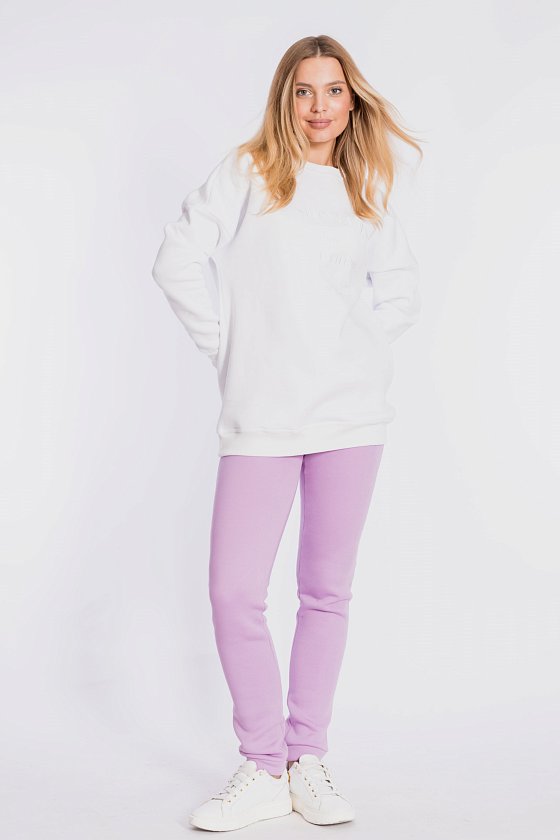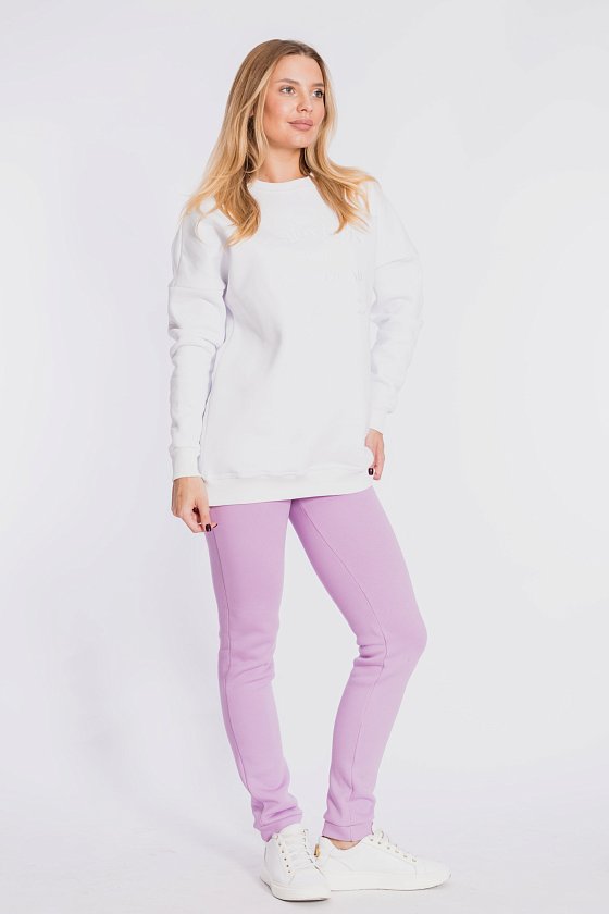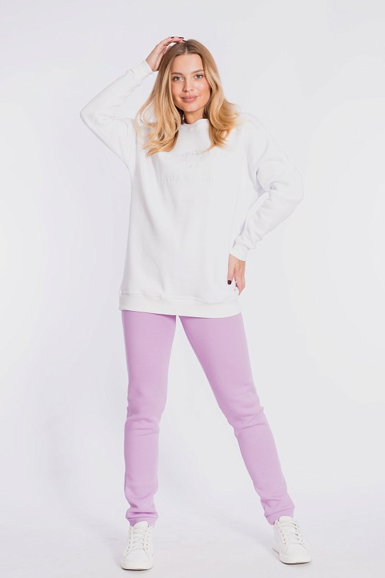 Брюки с поясом на резине и манжетами внизу. Выполнены из полотна с начёсом.