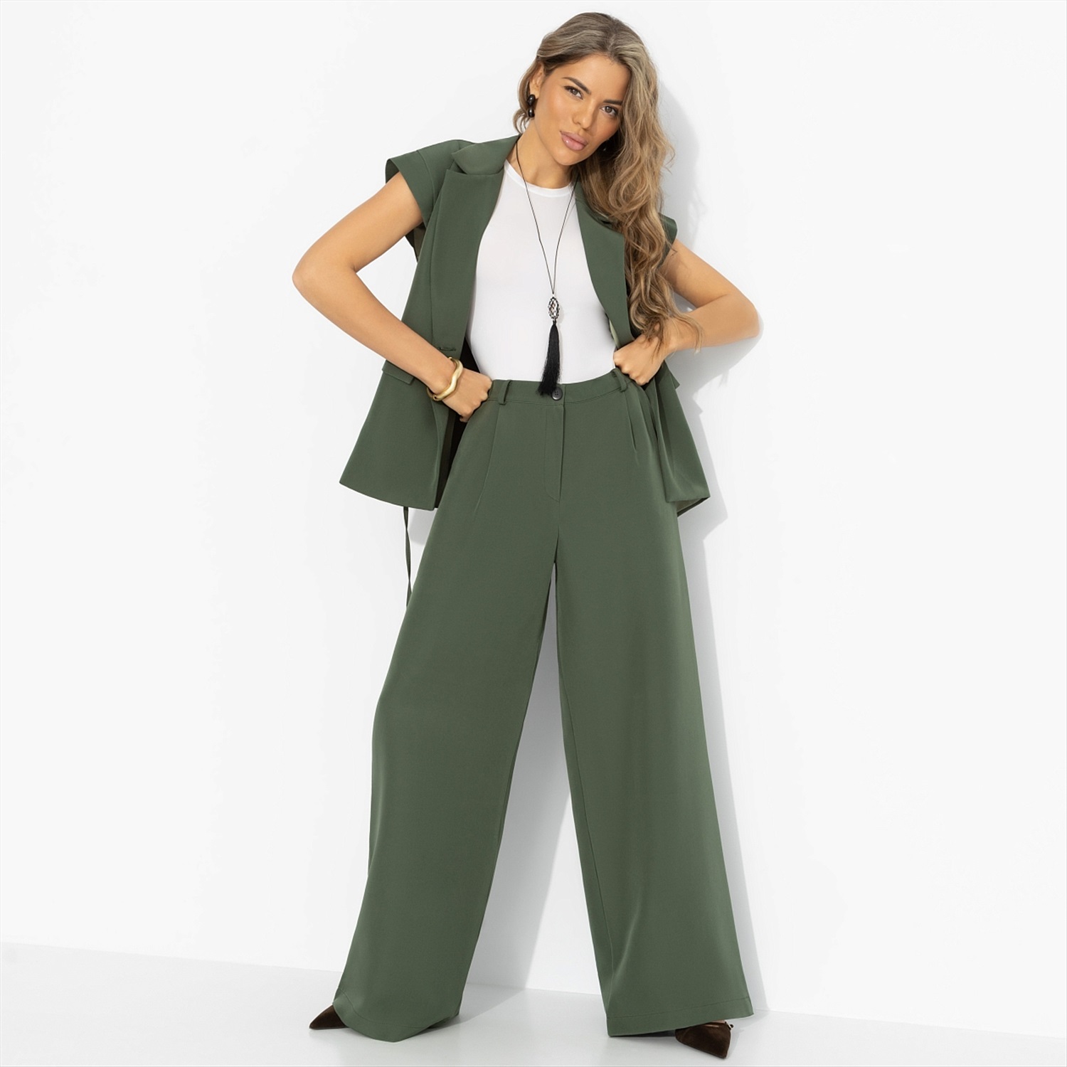 Почему в этих брюках хочется идти не торопясь – даже если вы опаздываете? Потому что «Лёгкой походкой» – это не просто название, а встроенный эффект! Свободный силуэт не тянет, не ломает линию шага и красиво движется вместе с телом. Высокая посадка собирает фигуру, удлиняет ноги и делает талию визуально уже – при полном комфорте. Ткань с вискозой приятна к телу, держит форму и не перегружает образ. Спандекс добавляет эластичность, а оттенок хаки легко сочетается с базовыми топами, жакетами и трикотажем.