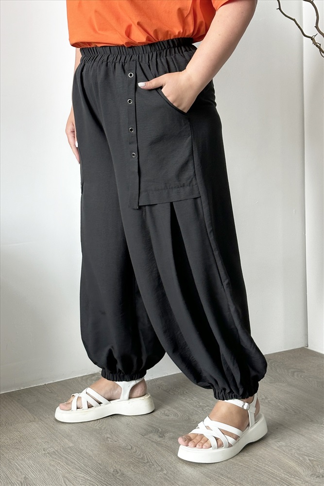 Фасон: Брюки Материал: Вискоза Параметры модели: Рост 173 см, Размер 54 Брюки карго с люверсами черные Элегантные брюки из мягкой струящейся ткани. Модель отлично сидит за счет высокой посадки и комфортной резинки на поясе. Практичные карманы по бокам добавляют функциональности. Модель с комфортной посадкой не сковывает движений, а резинка по низу брючины способствует оптимальной посадке по фигуре. Свободные брючины, оформленные по бокам небольшими складками, визуально стройнят и зрительно вытягивают силуэт. Комфортная модель - отличная база для создания разнообразных образов. Их могут смело носить как юные, спортивные барышни, так и изысканные дамы в возрасте. Правильно подобрав аксессуары, можно создавать смелые, утонченно женственные, строгие, деловые образы.