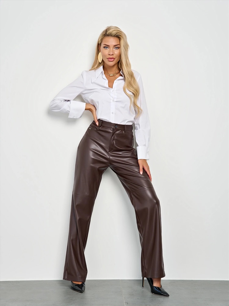 Брюки прямого кроя, высокая посадка.