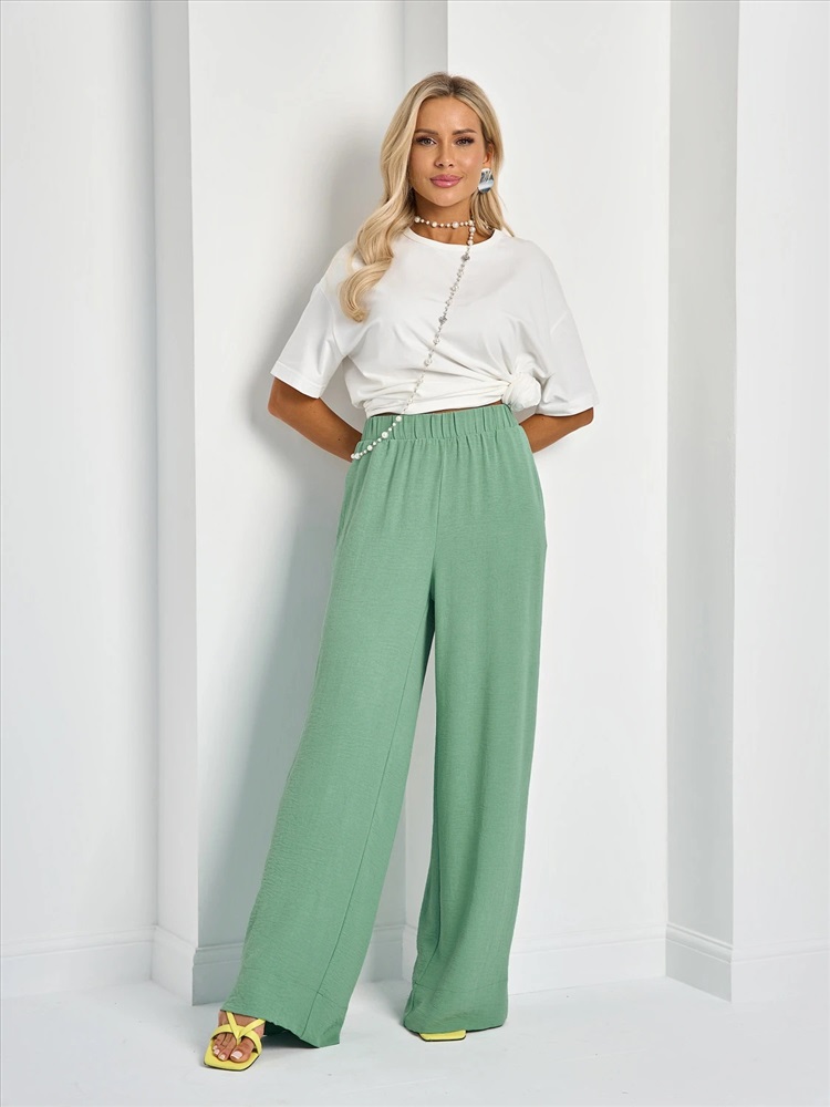 Широкие брюки из тонкой костюмной ткани с эффектом Crush.