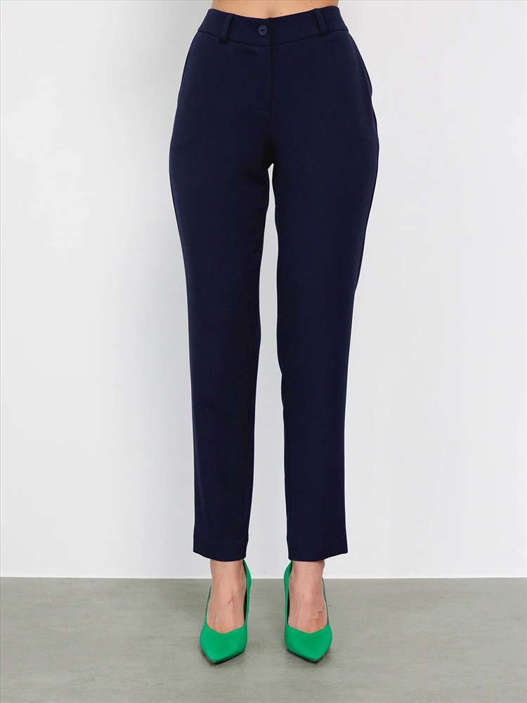 Брюки плотно прилегающие по бедрам и зауженные к низу.