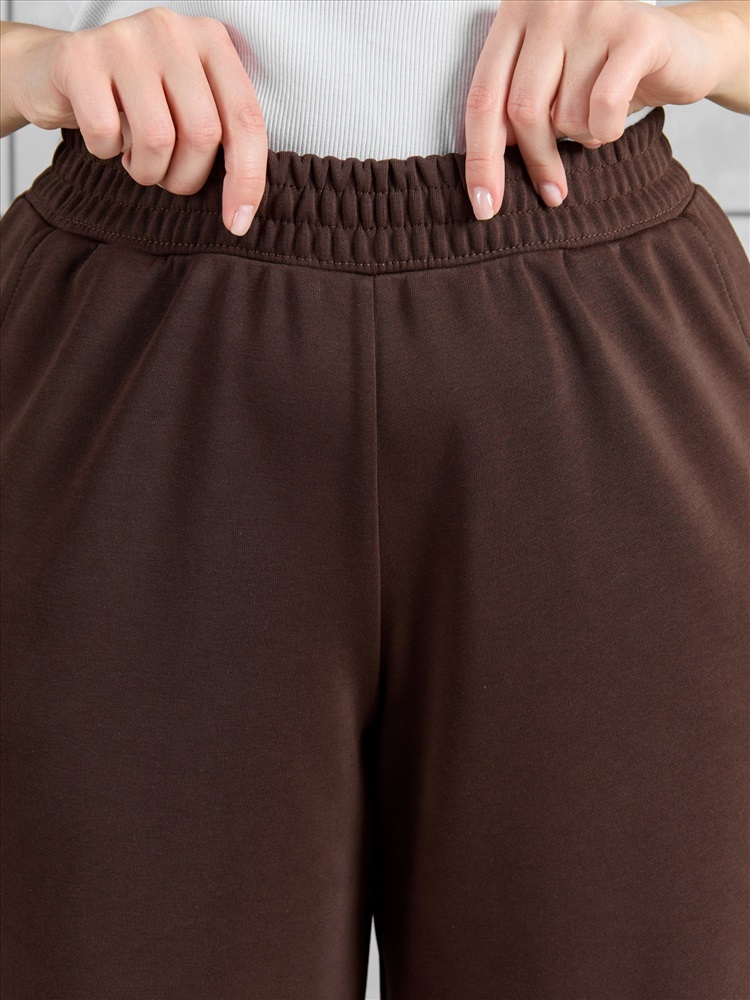 Ткань: Лининг Брюки женские укороченные, на притачном поясе с эластичной тесьмой внутри и карманами в боковых швах. На нижних частях передних половин застрочены две вертикальные складочки-защипы.