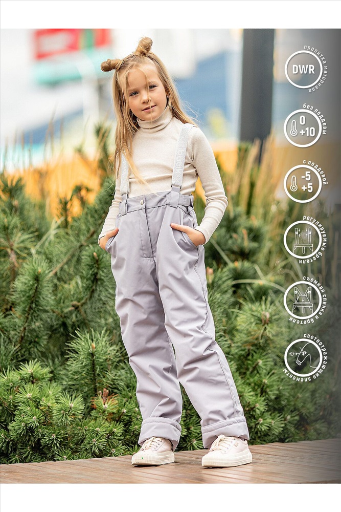 Страна производства: Россия Брюки для девочки Бруклин светло-серые на бретелях утепленные. Теплые и комфортные брюки на весну и осень. Выполнены из непромокаемой мембраны с подкладом и утеплителем. Подойдут для повседневных прогулок и активного отдыха. Прочная ткань защитит от влаги и ветра.