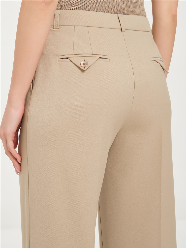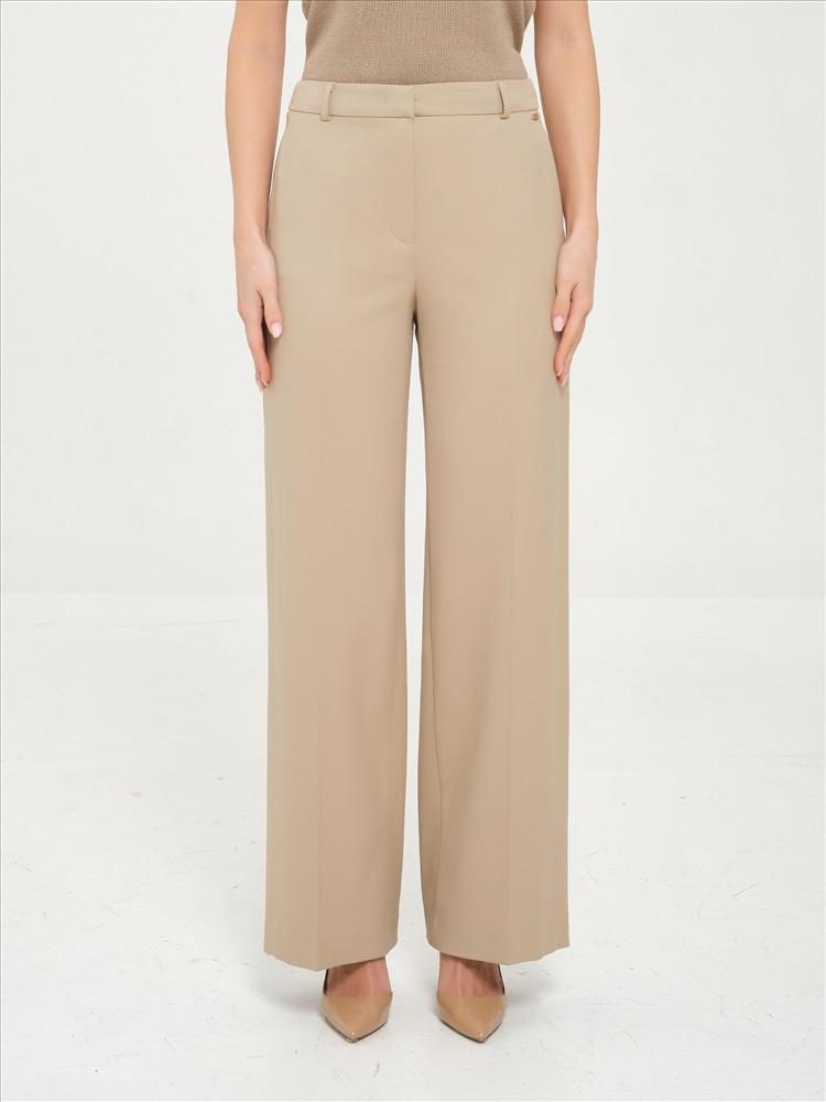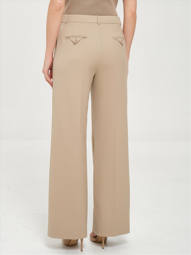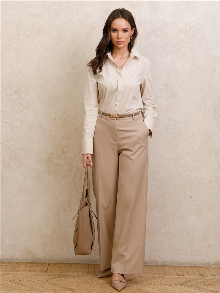 Брюки бежевые со стрелками от торгового дома Priz, выполнены из текстильного полотна., Модель прямого силуэта,, на подкройном поясе, со шлёвками. Спереди карманы в подрезных бочках. Застёжка на молнию и крючки на поясе. Сзади прорезные карманы в рамку с фигурным клапаном-петлёй, который застёгивается на пуговицу. Прекрасный выбор для городских модниц., Оттенок цвета может незначительно отличаться от фото., Ожидание отправки (рабочих дней): 7, Длина: в росте 164: в 42 р-ре - 110 см, в 54 р-ре - 111 см., Размер модели: 44., Рост модели: 164 см., Состав:, Вискоза 50%, Полиэстер 46%, Эластан 4%, Тип ткани:, Текстиль