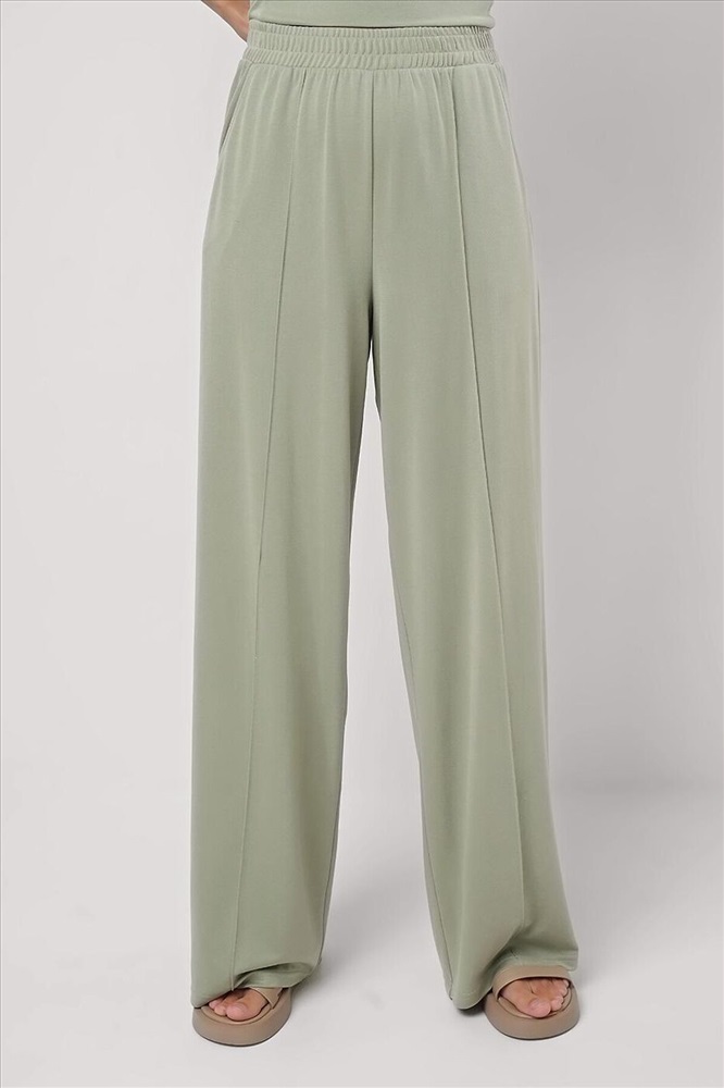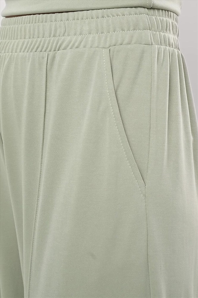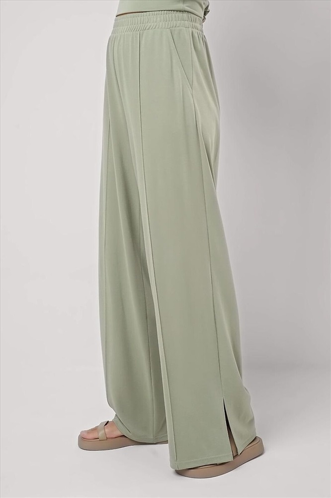 Брюки широкие из вискозного трикотажного полотна пике. По талии притачной пояс с внутренней резинкой. Боковые карманы с отрезным бочком. По переду и спинке защипы, внизу боковые разрезы. Состав: 70% Вискоза, 30% Полиэстер