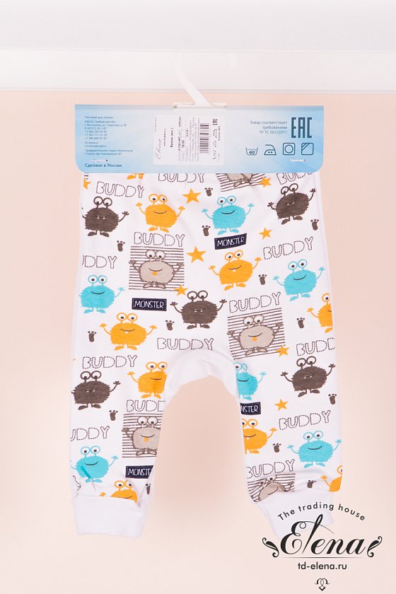Брючки для малышей выполнены из 100% хлопкового полотна. Низ брюк на манжетах, пояс на резине. Спереди нанесён принт.