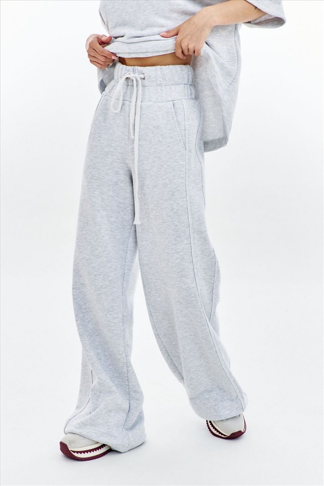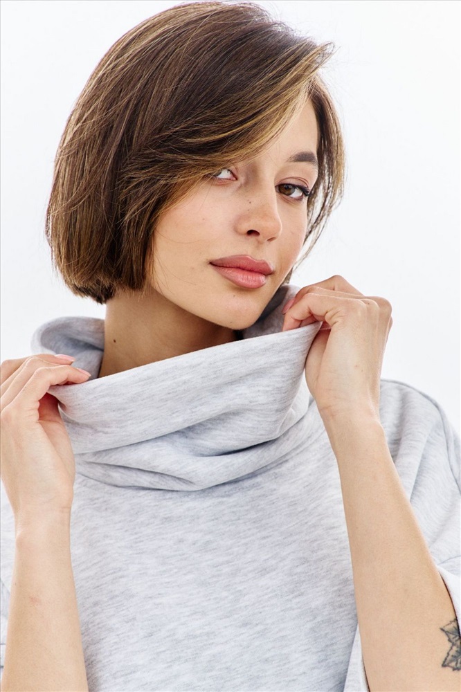Комплект (джемпер + брюки). Джемпер свободного кроя: - спущенная линия плеча - широкий воротник стойка - рукава втачные, длиной до локтя - по спинке и переду фигурные рельефы с открытыми швами Брюки палаццо: - широкий притачной пояс на резинке - лампасы с открытыми швами - карманы с наклонным входом .