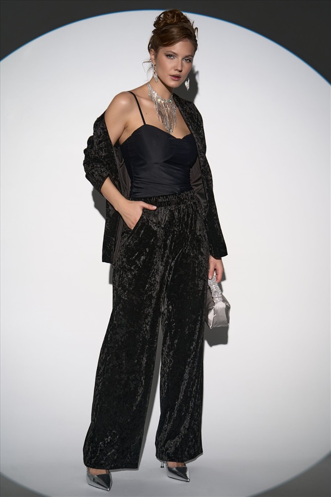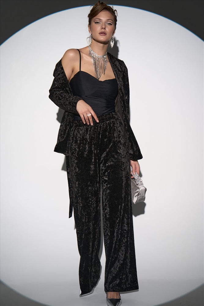 Погрузитесь в атмосферу утончённой элегантности с нашим вечерним костюмом из бархата “Эдит”. Для вашего удобства костюм разделили, чтобы Вы могли подобрать идеальный размер. Комфортные брюки на резинке идеально дополняют верх, обеспечивая свободу движений. Свободный крой и лёгкая драпировка бархата создают элегантный, непринуждённый силуэт. Брюки легко комбинируются с обувью на каблуке или балетками, делая образ завершённым и гармоничным Материал: Бархат – мягкая, плотная ткань с коротким блестящим ворсом Комментарии к товару