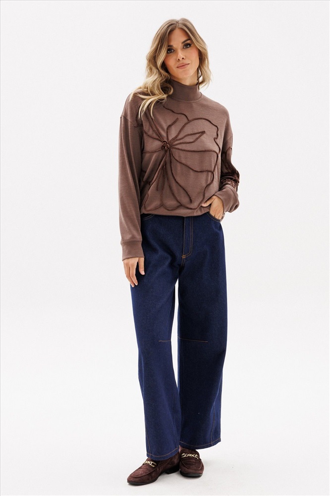 Джинсы-багги выполнены из плотного джинса. Брюки на притачном поясе, длиной до линии щиколотки, расширенные от бедер и слегка зауженные к низу. Спереди боковые карманы с фигурным входом. Застежка на пуговицу и молнию с гульфиком. На задних частях кокетки и накладные карманы. На передней и задней части коленные вытачки. Длина брюк: р.44-48 - 102 см, р. 50-54 - 103,5 см БРЮКИ м. 2897 44 46 48 50 52 54 Длина сбоку с поясом 102 102 102 103,5 103,5 103,5 Объем по талии 75 79 83 87 91 95 Объем по бедрам 106 110 114 118 122 126 Ширина пояса 4 4 4 4 4 4