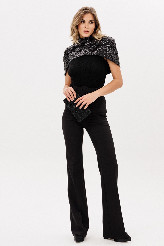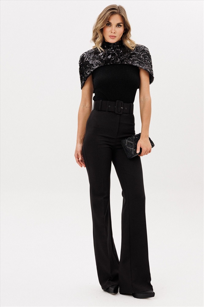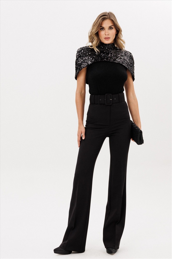Брюки выполнены из костюмной ткани. Брюки покроя "клеш", на притачном поясе, длиной в пол. Спереди застежка на молнию с гульфиком, потайную пуговицу и два брючных крючка. Передние и задние части брюк заутюжены на кант. В комплект входит съемный пояс из основной ткани. Длина брюк с поясом: р. 44-48 - 119 см, р. 50-54 - 120 см. БРЮКИ м. 2925 44 46 48 50 52 54 Длина сбоку 119 119 119 120 120 120 Объем по талии 72 76 80 84 88 92 Объем по бедрам 93 97 101 105 109 113 Ширина пояса 6 6 6 6 6 6