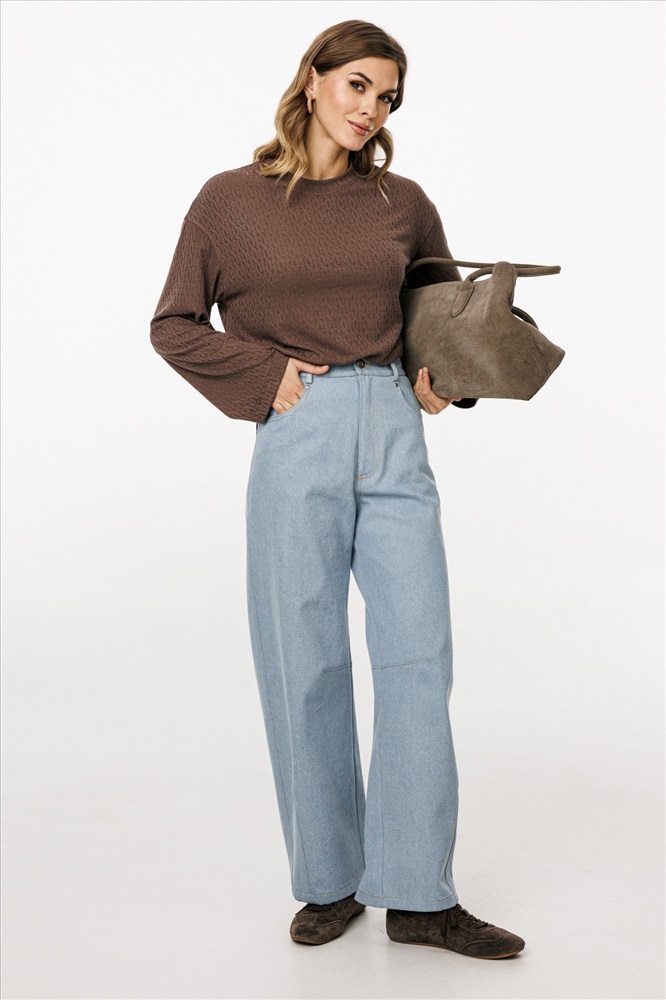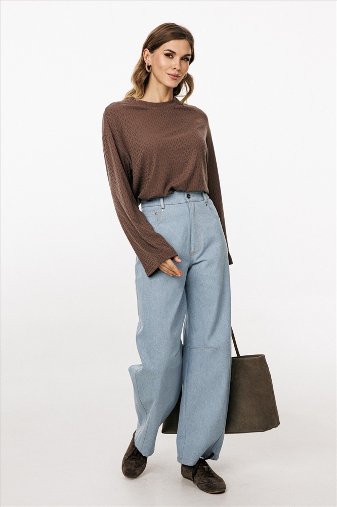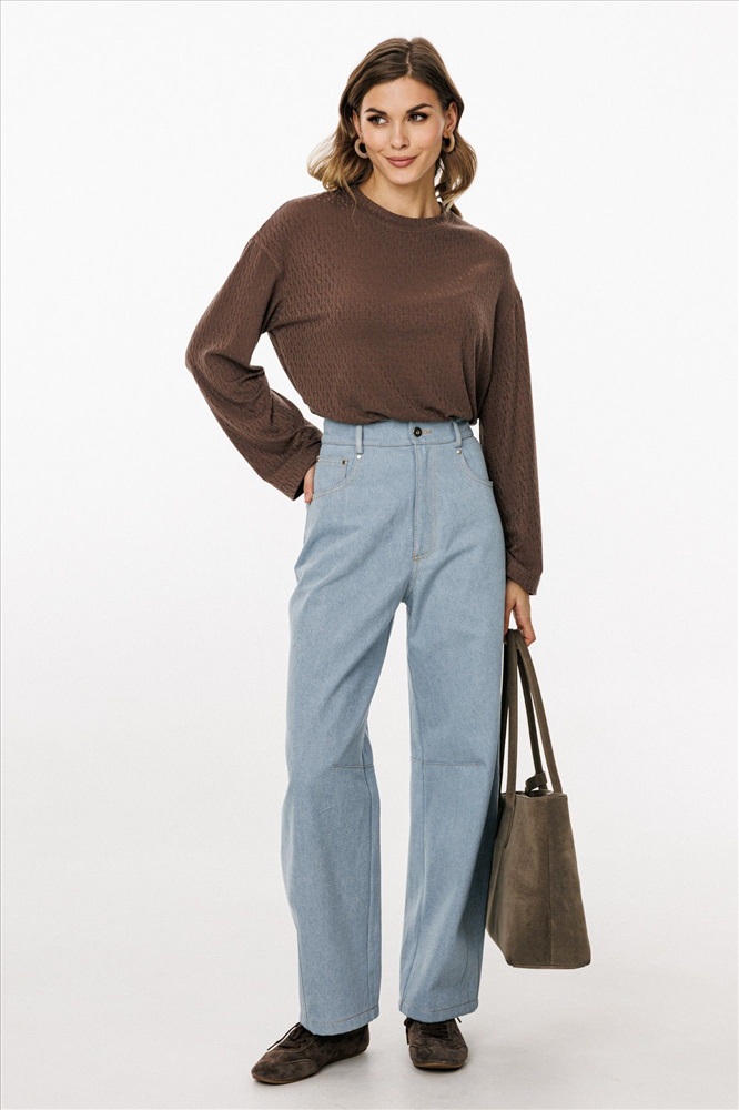 Джинсы-багги выполнены из плотного джинса. Брюки на притачном поясе, длиной до линии щиколотки, расширенные от бедер и слегка зауженные к низу. Спереди боковые карманы с фигурным входом. Застежка на пуговицу и молнию с гульфиком. На задних частях кокетки и накладные карманы. На передней и задней части коленные вытачки. Длина брюк: р.44-48 - 102 см, р. 50-54 - 103,5 см БРЮКИ м. 3043 44 46 48 50 52 54 Длина сбоку с поясом 102 102 102 103,5 103,5 103,5 Объем по талии 75 79 83 87 91 95 Объем по бедрам 106 110 114 118 122 126 Ширина пояса 4 4 4 4 4 4