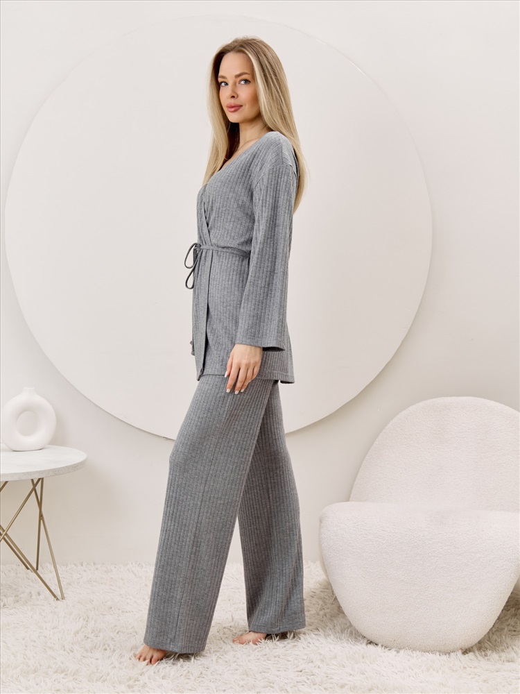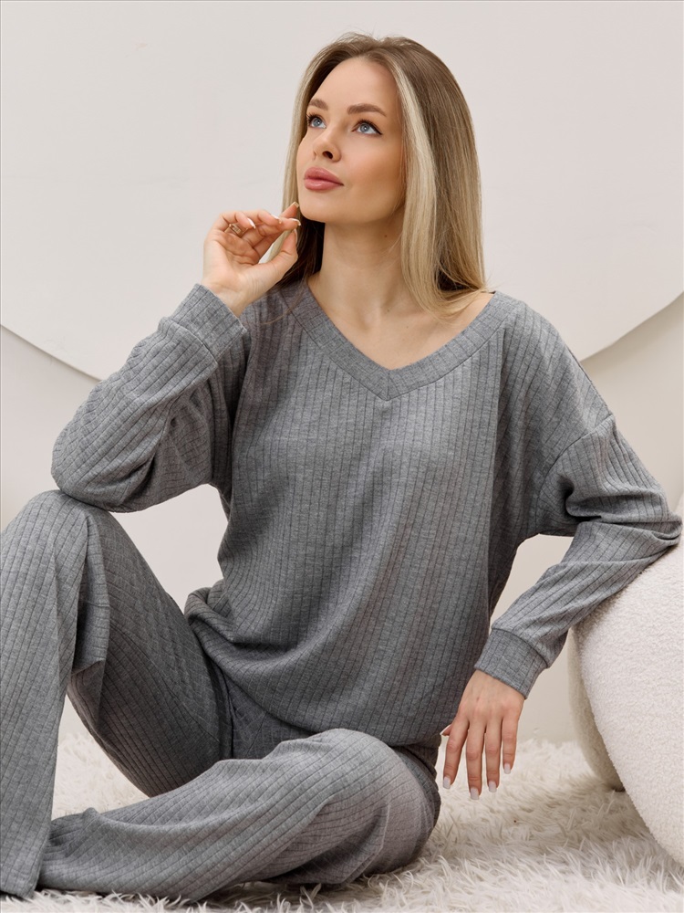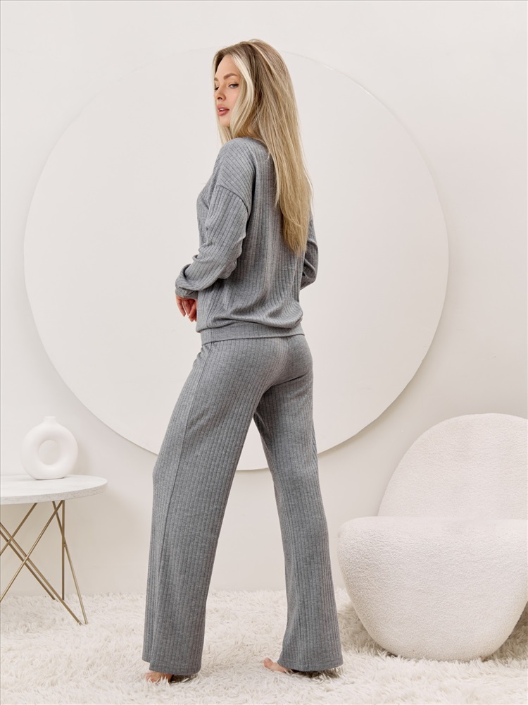 Ткань: Фактурный трикотаж Брюки – женские из гладкокрашенного трикотажного фактурного полотна в «рубчик» с добавлением ангоры, полуприлегающего силуэта, длинные, слегка расширенные книзу, на притачном поясе с эластичной тесьмой внутри.