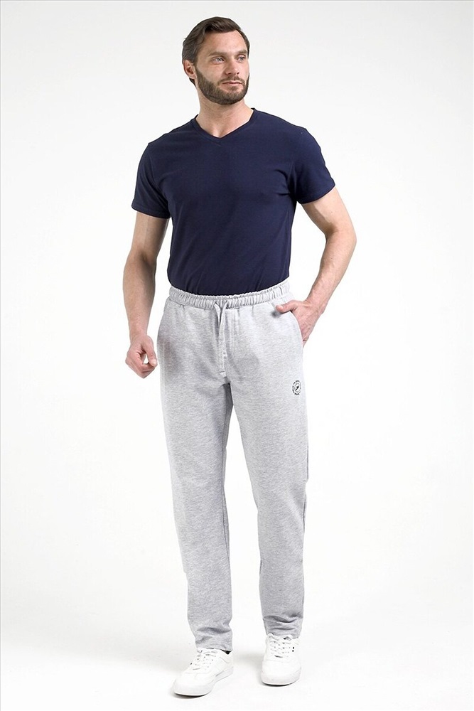 Трикотажные мужские брюки из хлопка с добавлением полиэстера, мягкие и приятные на ощупь, не сковывают движения, обеспечивая максимальный комфорт. На задних половинках два накладных кармана. На передних половинках так же имеются карманы. По поясу брюки собираются широкой резинкой. Дополнительно в поясе имеется шнур