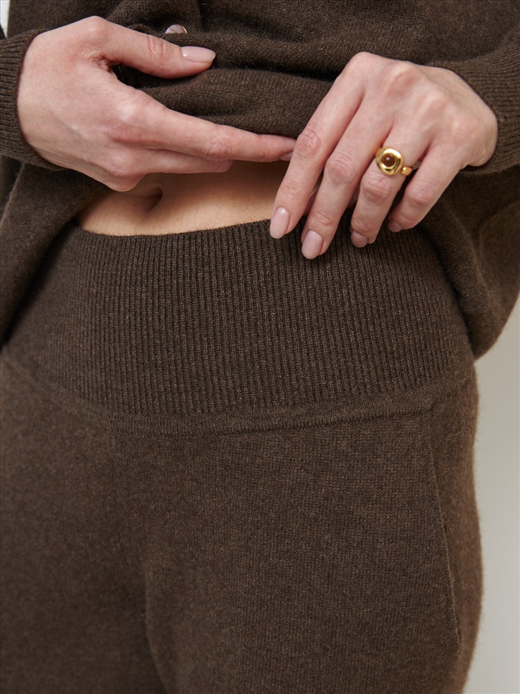 Состав: 100% пух яка Размер на модели: М Рисунок: нет Сезон: осень, зима, весна, лето Стиль: деловой, кэжуал, повседневный, домашний Тип ткани: пух яка Подклад: нет Детали: пояс на высокой резинке Длина изделия: стандарная Модель: широкие брюки прямого кроя Эти брюки из пуха яка коричневого цвета — воплощение комфорта и тепла для холодного сезона. Мягкий и приятный на ощупь материал из пуха яка обеспечивает отличную терморегуляцию и защиту от холода, оставаясь при этом дышащим. Брюки выполнены в прямом крое, что обеспечивает свободу движений и стильный внешний вид. Эластичный пояс комфортно сидит на талии, не стягивая и не вызывая дискомфорта. Идеальный выбор для создания повседневных и уютных образов в сочетании с любимыми свитерами или кардиганами. Комментарии к товару