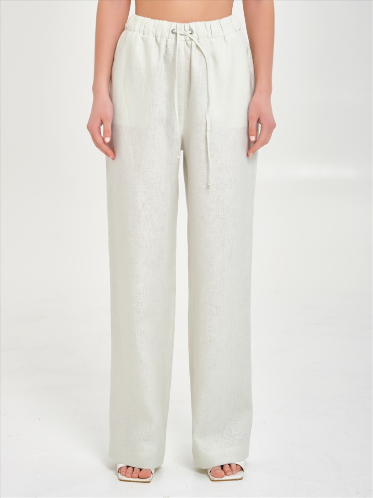 Брюки изо льна с карманами цвета слоновая кость от фабрики Priz. Модель прямого силуэта. Пояс эластичный, с кулисой и шнурком. Сзади накладные карманы с клапанами. Комфорт и стиль на каждый день., Оттенок цвета может незначительно отличаться от фото., Ожидание отправки (рабочих дней): 7, Длина: 164: в 42 р-ре - 111 см, в 54 р-ре - 112 см., Размер модели: 44., Рост модели: 174 см., Состав:, Лён 100%, Тип ткани:, Лён