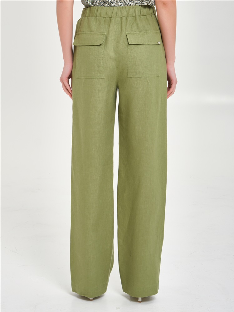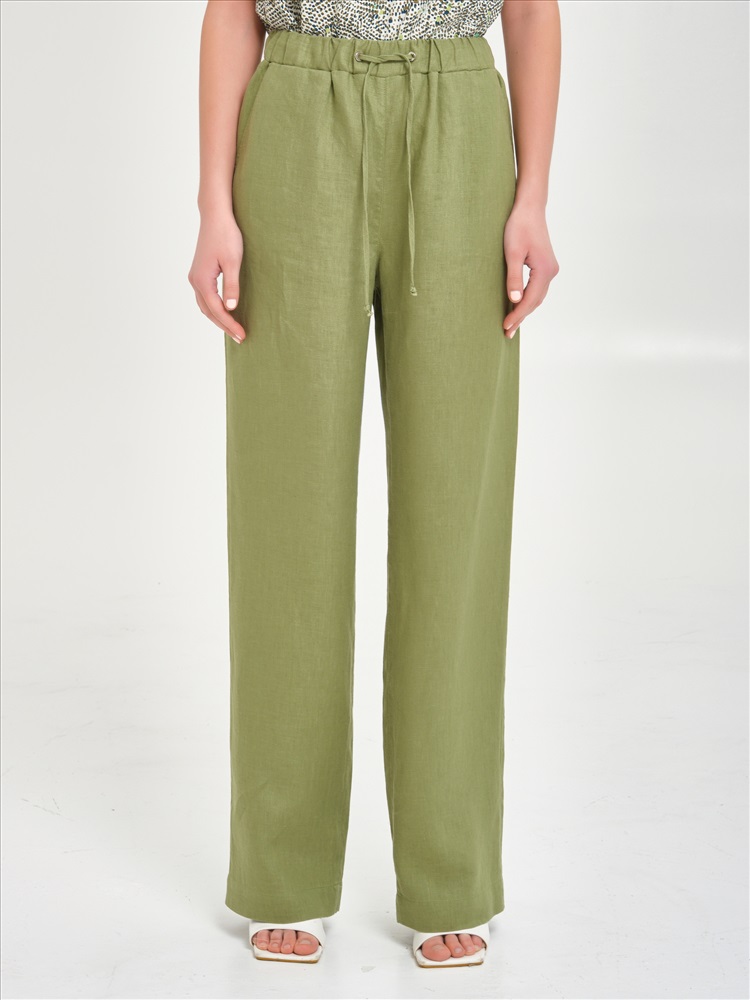 Брюки изо льна с карманами в цвете бледный лайм от фабрики Priz. Модель прямого силуэта. Пояс эластичный, с кулисой и шнурком. Сзади накладные карманы с клапанами. Комфорт и стиль на каждый день., Оттенок цвета может незначительно отличаться от фото., Ожидание отправки (рабочих дней): 7, Длина: 164: в 42 р-ре - 111 см, в 54 р-ре - 112 см., Размер модели: 44., Рост модели: 174 см., Состав:, Лён 100%, Тип ткани:, Лён