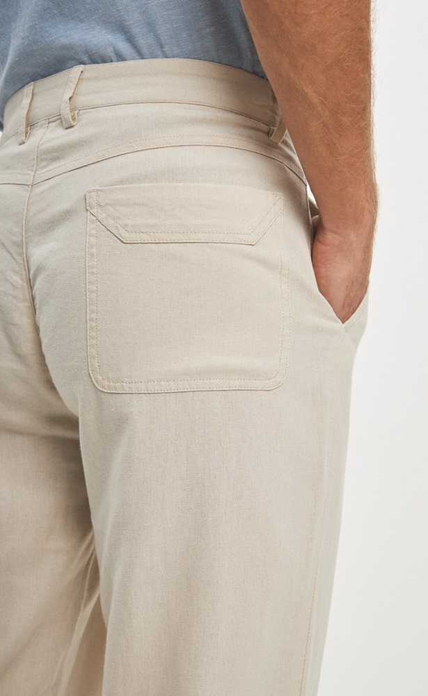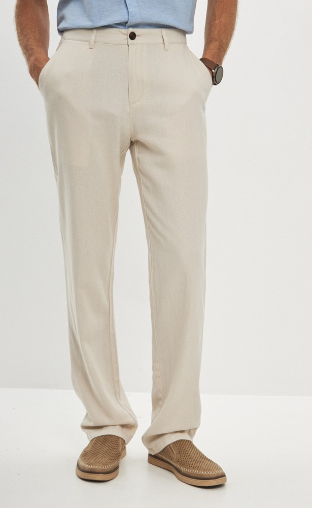Брюки льняные мужские светло-бежевого цвета от бренда Fine Joyce – это универсальная и стильная модель для активной жизни. Брюки из льна – неотъемлемая часть летнего мужского гардероба, без которой едва ли можно сегодня обойтись. Все наши льняные брюки шьются из 100% натурального льна высшего качества и проходят дополнительную энзимную обработку, в результате чего они не подвержены усадке при последующих стирках и не линяют. Окрашены брюки мужские натуральными, не агрессивными красителями, которые экологичны и безопасны. Брюки мужские классические свободного кроя, пояс на пуговице со шлёвками под ремень. Имеются боковые карманы с отрезным бочком и задние прорезные карманы. Длина внутреннего шва для всех размеров 86 см. Летние брюки из льна обладают всеми достоинствами натуральных материалов, позволяют телу дышать в теплую погоду, приятно ощущаются на теле и делают их невероятно удобными. Льняные брюки оптом отлично подойдут на жаркую погоду как для офиса, так и для отдыха, а в сочетании с льняной рубашкой Fine Joyce или джинсовой рубашкой Primm можно создать расслабленный повседневный образ для лета. Льняные брюки – базовый элемент одежды для активных и стильных парней и мужчин. Они удобны и практичны при вождении авто, а также, если Вы активны и много двигаетесь. Брюки идеальны для спортивных прогулок, активного отдыха на свежем воздухе, для выезда на природу. С помощью этой модной вещи можно собрать любой образ: от спортивного на пляж, в зал, на вечеринку, до классического на отдых, в офис. Мужские брюки оптом представлены как стандартными размерами – от 46 до 52, так и большими размерами – от 54 до 56. Летние брюки для мужчин от бренда Fine Joyce приятно удивят своим качеством и подарят ощущение максимального комфорта. Вы можете купить брюки оптом на нашем сайте по выгодным ценам. Для удобства в карточке товара расположено фото с мерками. Fine Joyce— динамично развивающийся российский бренд. Fine Joyce — высокое качество по оптимальной цене!