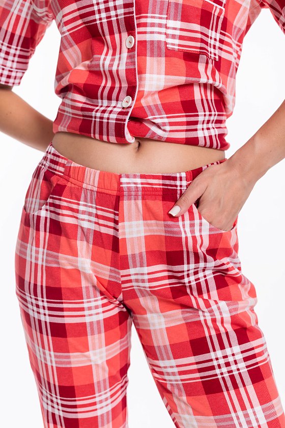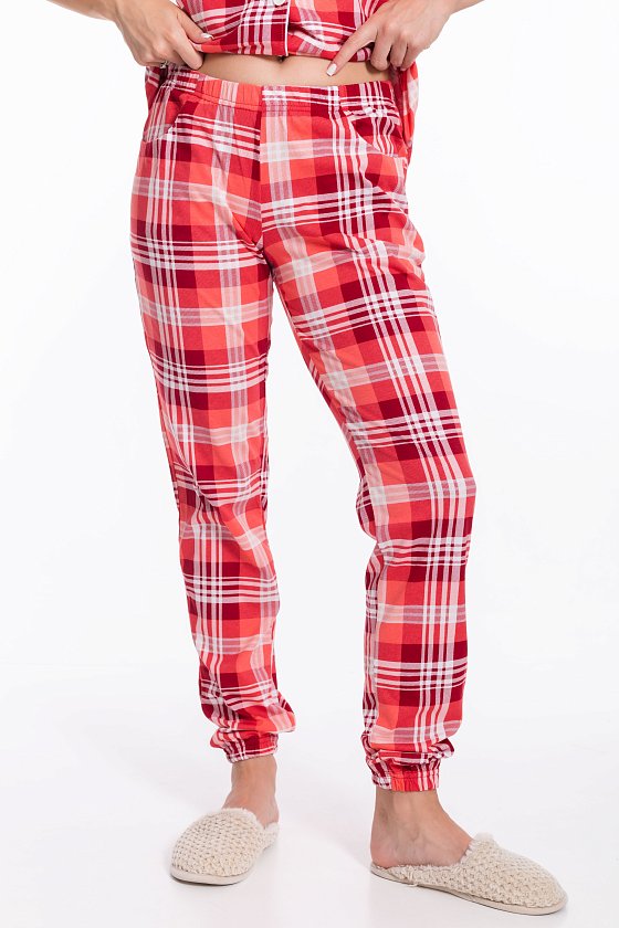 Брюки в клетку с поясом и низом на резинке — практичный и модный элемент женского гардероба. Боковые карманы добавляют функциональность, а дизайн в клетку придаёт изделию стильный вид. Брюки из 100% хлопка подойдут для повседневной носки.