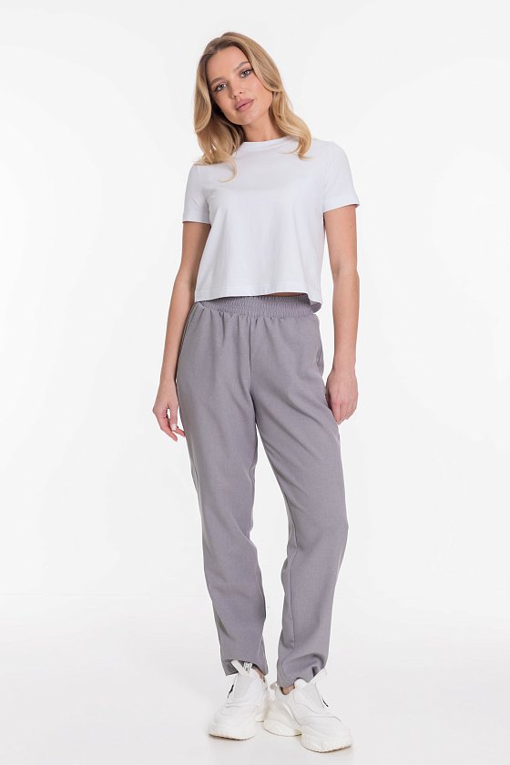 Пояс на резинке, боковые карманы, зауженные внизу.