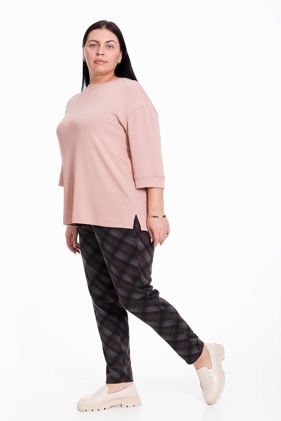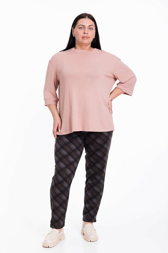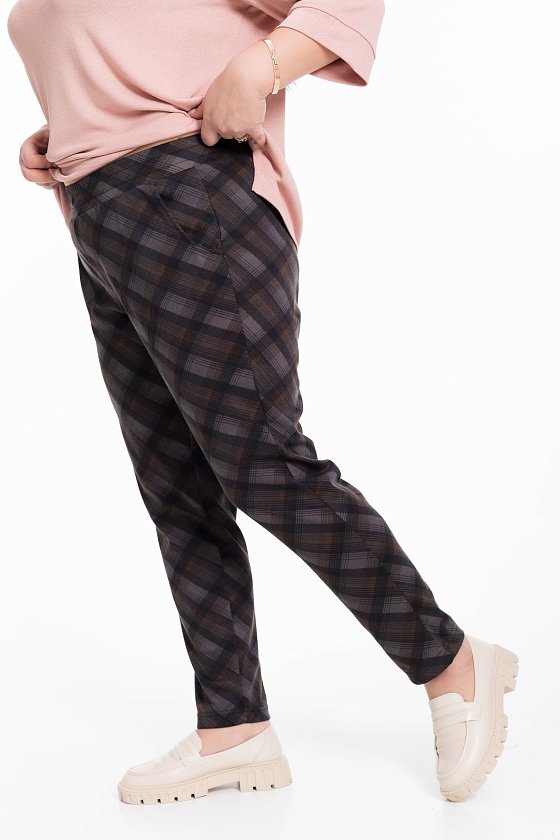Женские брюки прямого кроя из академика серого цвета с набивным рисунком клетка будут отличным выбором для создания стильного и элегантного образа.