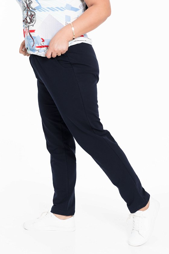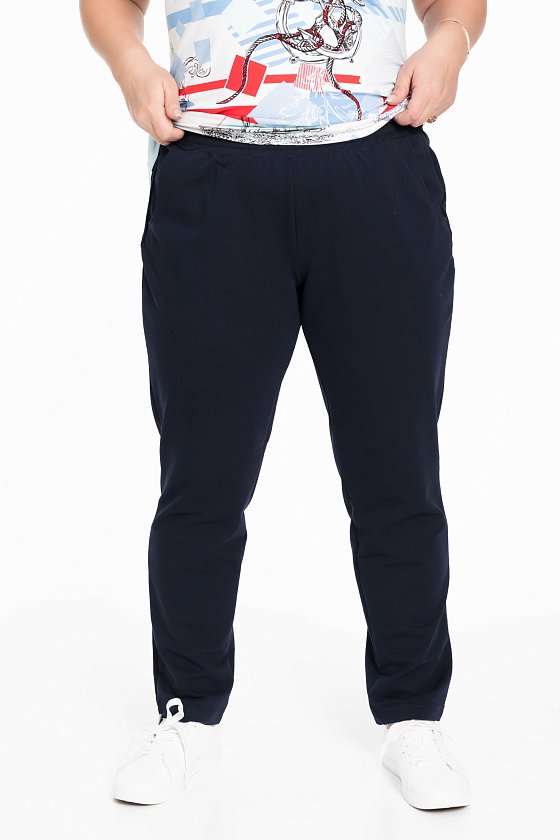 Брюки прямого кроя с притачным поясом на резинке и боковыми карманами обеспечивают удобство и практичность.