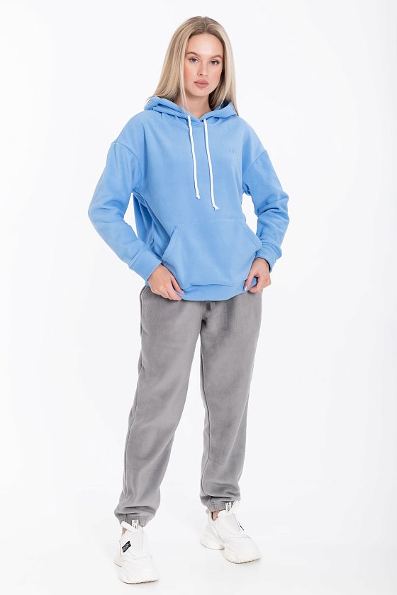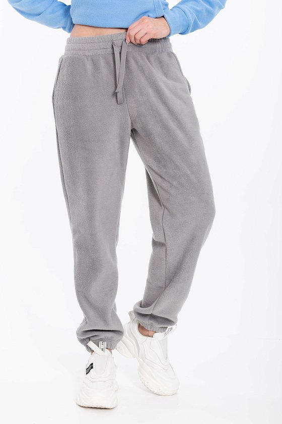 Женские серые брюки из флиса — отличный выбор для повседневной носки. Боковые карманы и пояс на резинке со шнуром обеспечивают комфортную посадку, а низ штанин на резинке хорошо садится по фигуре. Брюки сохраняют тепло и подходят для активного отдыха.