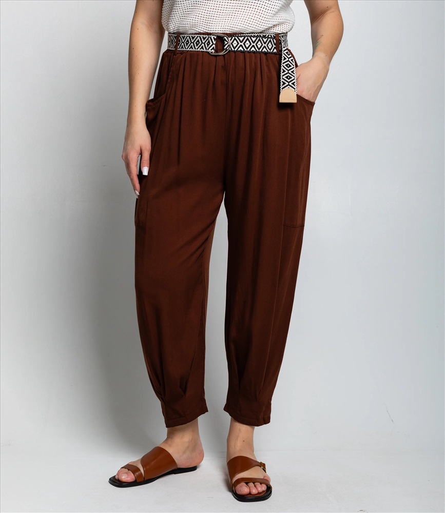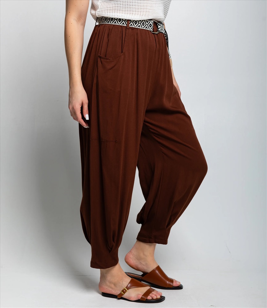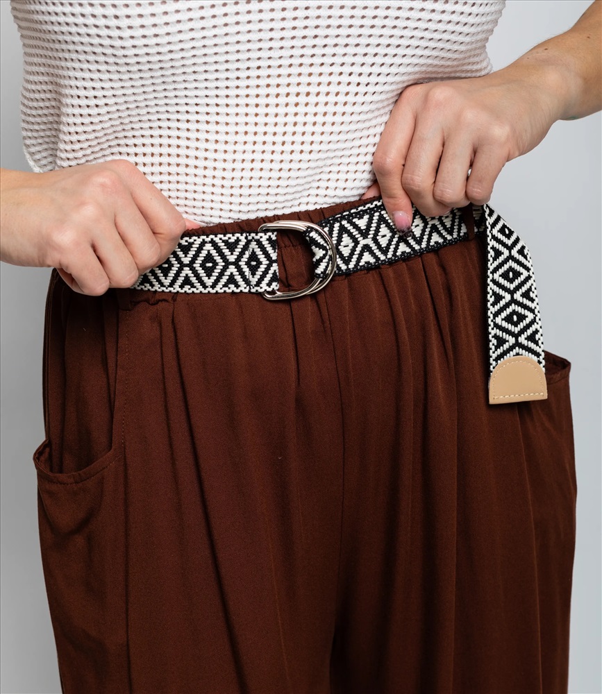 Брюки — это одежда, которая подчеркивает привлекательность любой женщины. Брюки свободного кроя с высокой посадкой, фиксируются на талии декоративным поясом с геометрическим узором и крупной пряжкой. Модель выполнена в стиле «бананы» — слегка сужается к низу, где оформлена манжетами, мягко собирающими ткань. По бокам расположены вместительные накладные карманы. Для пошива использована ткань из 60% хлопок, 35% вискоза и 5% эластана, которая характеризуется отменным качеством. Даже после многократных стирок изделие не утратит первоначальной привлекательности. Вы сможете предлагать их своим покупателям с радостью. Обратите внимание на цвет: он насыщенный и полностью соответствует фотографии на сайте. Чтобы вы были уверены в размере, мы представили на странице таблицу размеров. Воспользовавшись ею, вы сможете сами обмерить себя и удостовериться в правильности выбора. Установленная нами оптовая цена является доступной. Для оптовых клиентов действуют выгодные условия сотрудничества и гибкая система скидок; уточнение минимального заказа и сроки поставки можно узнать у менеджера.