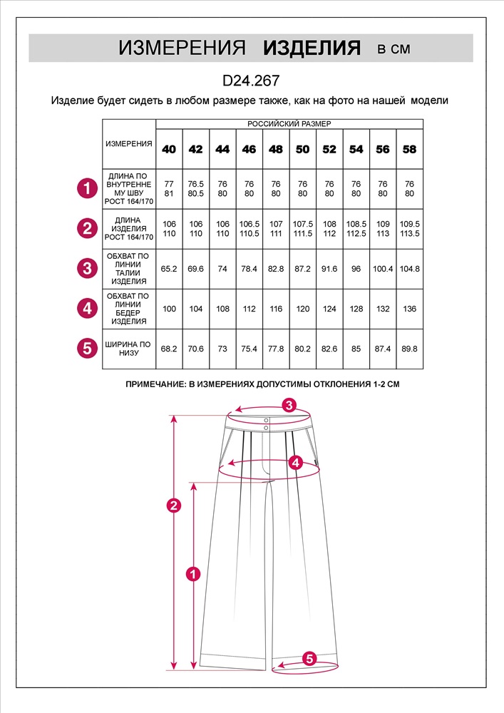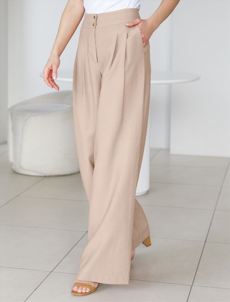 Параметры модели на первом фото: Рост 170, бюст 89, талия 63, бедра 92 Брюки выполнены из плотного лиоцелла. Модель дополнена карманами и высоким поясом на пуговицах. Ткань изделия отлично держит форму, плавно драпируется и не просвечивает. В теплое время года приятно охлаждает кожу. Добавление синтетических волокон в составе изделия, предотвращает сминаемостьи поддерживает формоустойчивость. Брюки сочетаются в костюме с топом D23.063 и блузкой D29.266, D29.267 и жилетом D27.002 Комментарии к товару
