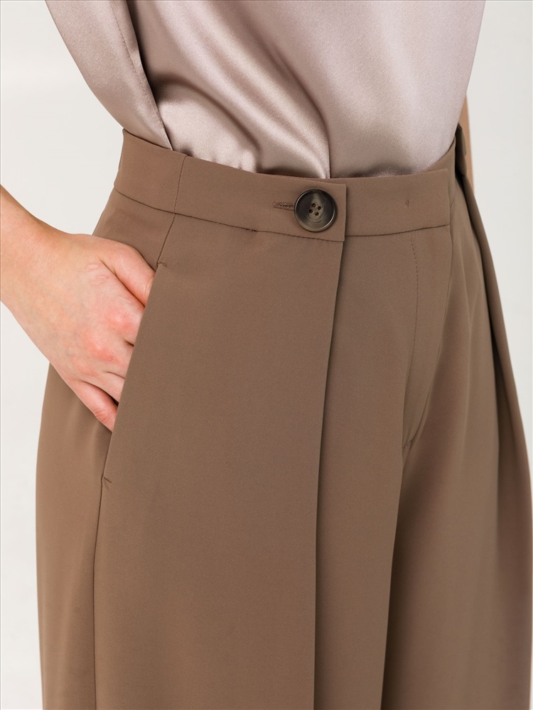 Брюки-палаццо серо-коричневые от торгового дома Priz. Модель свободного кроя. Пояс комбинированный, спереди - подкройной, сзади - притачной со сборкой на резину. Застёжка на молнию и крючки на поясе. В боковых швах карманы. Глубокие складки спереди застёгиваются на пуговицы. Прекрасный выбор для городских модниц., Оттенок цвета может незначительно отличаться от фото., Ожидание отправки (рабочих дней): 7, Размер модели: 44., Рост модели: 164 см., Состав:, Вискоза 50%, Полиэстер 50%, Тип ткани:, Текстиль
