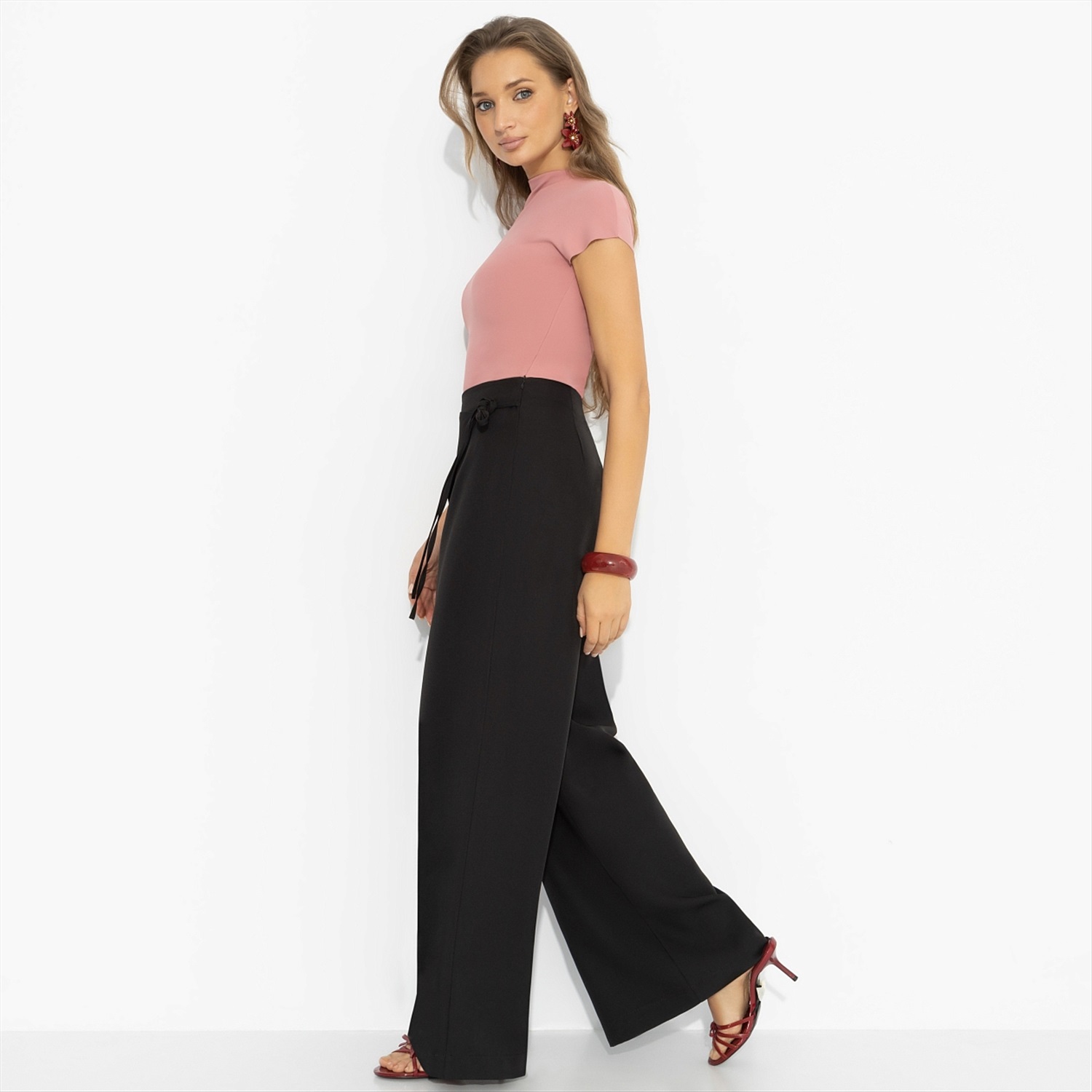 Состав: «Барби» (60% п/э, 37% вискоза, 3% лайкра) Плотность ткани: Средняя Тип ткани: Текстиль Вид застежки: Молния Высота посадки: Высокая Карманы: Нет Основной цвет ткани: Черный Подклад: Нет Рисунок/раппорт: Нет, все изделия идентичны Сезон: Круглогодичный Стиль: Повседневный Фасон брюк: Широкие Фасон брюк: Широкие Параметры модели на фото: