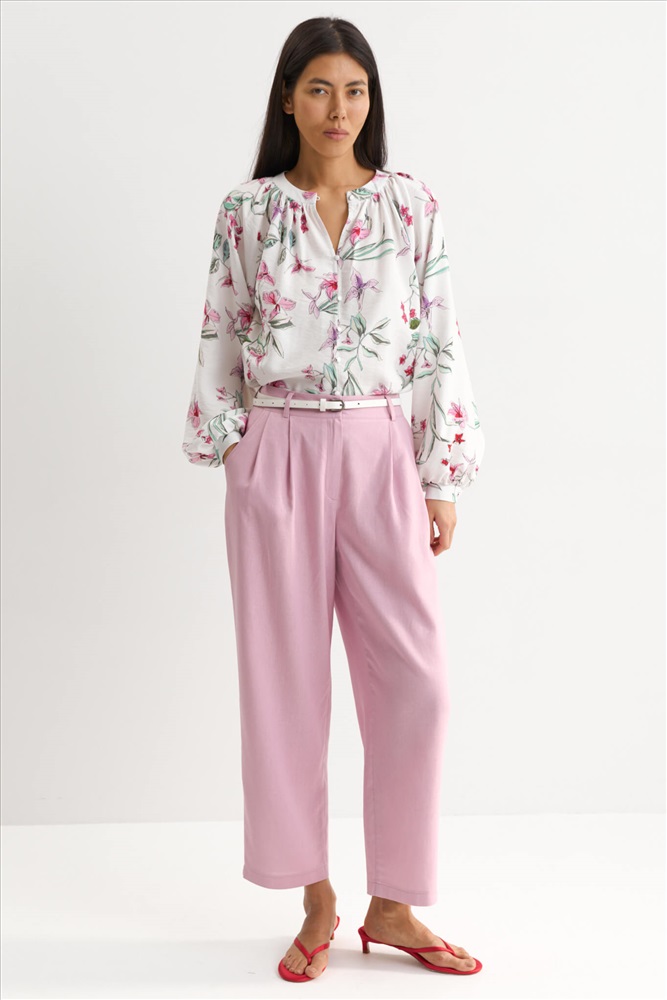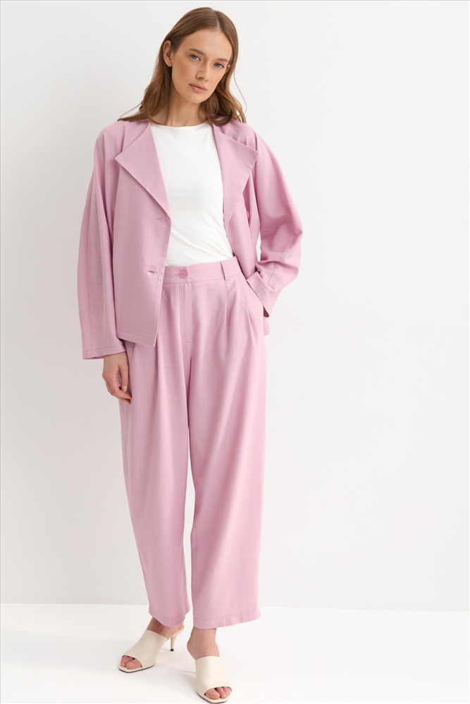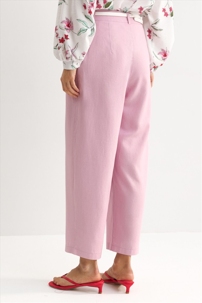 Состав: 70% Лен 30% Вискоза Длина: 96 см. Цветовая гамма: Пыльная роза Силуэт: Заужен к низу Принт: Нет Коллекция: Лето #4 Комфортные брюки актуального кроя barrel. Модель свободного, зауженного к низу силуэта. По переду защипы, боковые карманы, гульфик. Застежка на молнию и пуговицу. Комментарии к товару