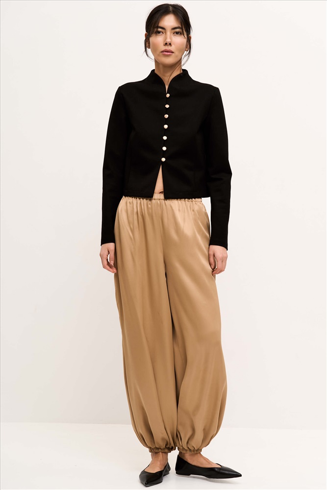 Трендовые брюки-алладины из струящейся вискозы. Модель свободного кроя. Карманы в боковых швах. Пояс и низ изделия на резинке.