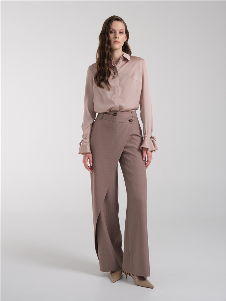 Брюки серо-коричневые с запахом от торгового дома Priz., Модель, прямого силуэта, на подкройном поясе, со шлёвками. Застёжка на молнию и пуговицу на поясе. Отлетная деталь фиксируется пуговицей. Сзади прорезной с листочкой. Прекрасный выбор для городских модниц., Оттенок цвета и расположение рисунка могут незначительно отличаться от фото., Ожидание отправки (рабочих дней): 7, Длина: в росте 164: в 42 р-ре - 111 см, в 54 р-ре - 112 см., Размер модели: 44., Рост модели: 164 см., Состав:, Полиэстер 50%, Вискоза 47%, Эластан 3%, Тип ткани:, Текстиль