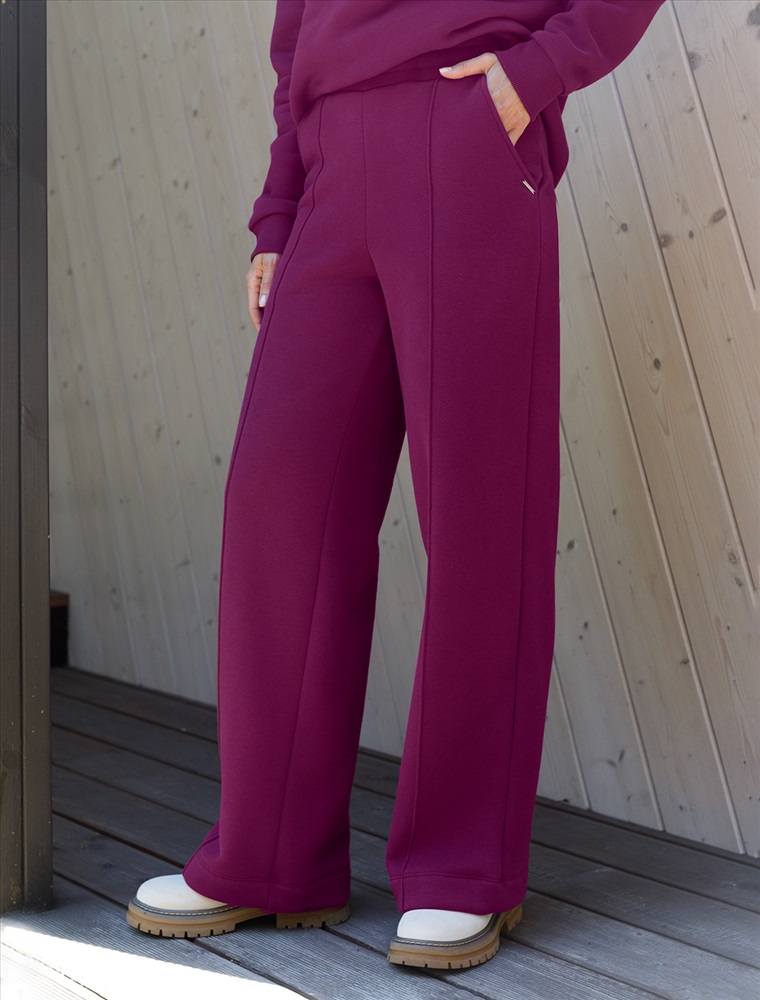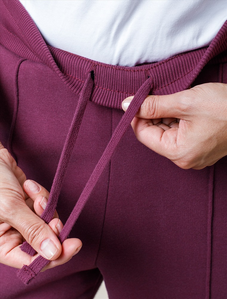 Размер товара на первом фото: 42 Теплые брюки прямого кроя с удобным поясом на резинке и карманами по бокам выполнены из премиального футера-трехнитки. Наличие эластана в составе гарантирует комфорт и долговечность изделия, материал хорошо пропускает воздух, позволяя телу дышать, а мягкий начес обеспечивает дополнительное тепло и комфорт в прохладную погоду. Эти уютные брюки стильного пурпурного цвета созданы для вашего комфорта. Свободный прямой крой обеспечивает свободу движений и максимальное удобство в любых ситуациях, поэтому они подойдут и на большие размеры, а так же на высокий или низкий рост. Фигура подчеркивается, а силуэт визуально вытягивается за счет кроя палаццо и застроченных декоративных стрелок. Вы можете создать стильный образ на каждый день в сочетании с любой футболкой нашего бренда, худи D49.102 и бомбером D49.103. В повседневных трикотажных брюках вы будете чувствовать себя комфортно и уверенно, наслаждаясь каждым моментом дня. Комментарии к товару