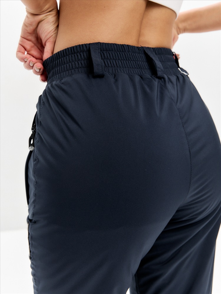 Теплые мужские брюки изготовлены из водоотталкивающей плащевой ткани с мембранным пленочным покрытием. Брюки прямого силуэта утеплены высококачественным полиэфирным материалом. Подкладка - гладкая полиэфирная ткань. Карманы брюк прорезные, с молниями. Под левым карманом нашивка с фирменным логотипом. Пояс брюк с внутренней стороны изготовлен из мягкого ворсованного трикотажа, Для регулировки брюк по талии предусмотрена резинка и шлевки для поясного ремня.