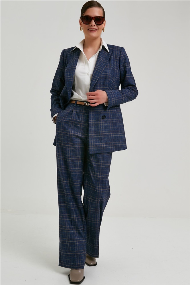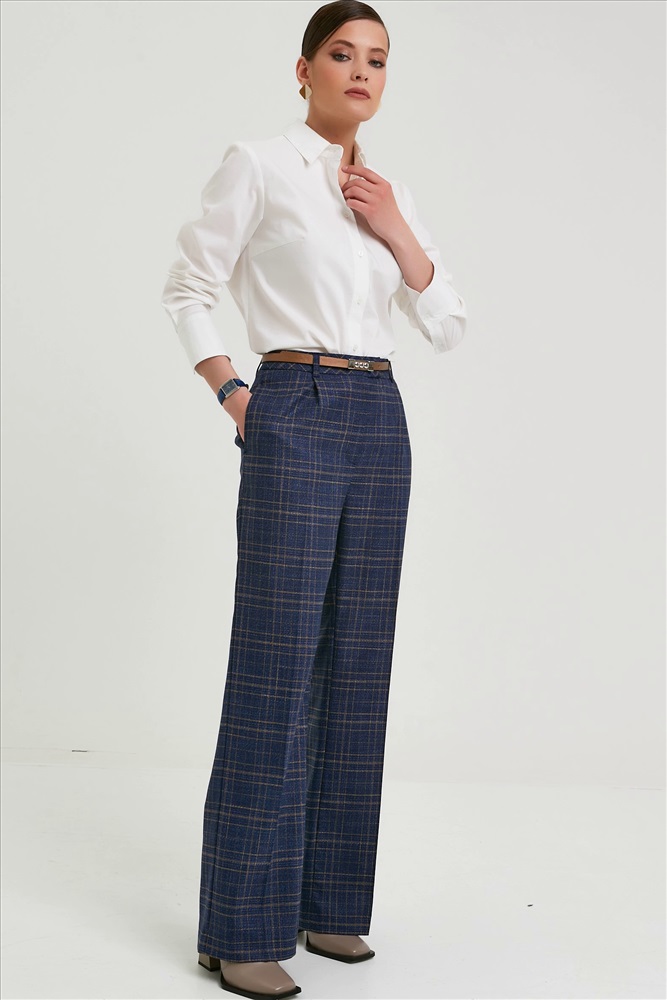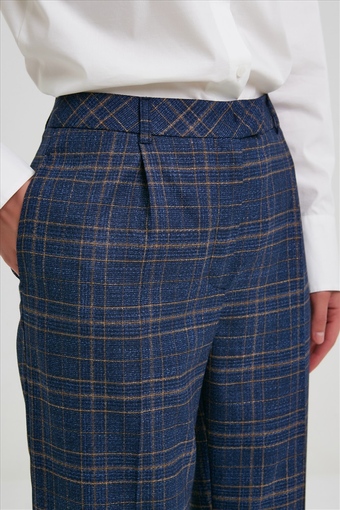 Брюки в клетку синего цвета от торгового дома Priz, выполнены из текстильного полотна. Модель прямого силуэта, на подкройном поясе со шлёвками. Спереди защипы. Застёжка на молнию и крючки на поясе. В боковых швах карманы. Сзади прорезные карманы с листочкой. Ремень в комплект не входит. Прекрасный выбор для городских модниц., Оттенок цвета и расположение рисунка могут незначительно отличаться от фото., Ожидание отправки (рабочих дней): 7, Длина: в росте 164: в 42 р-ре - 108 см, в 54 р-ре - 109 см., Размер модели: 44., Рост модели: 164 см., Состав:, Вискоза 53%, Лавсан 45%, Эластан 2%, Тип ткани:, Текстиль
