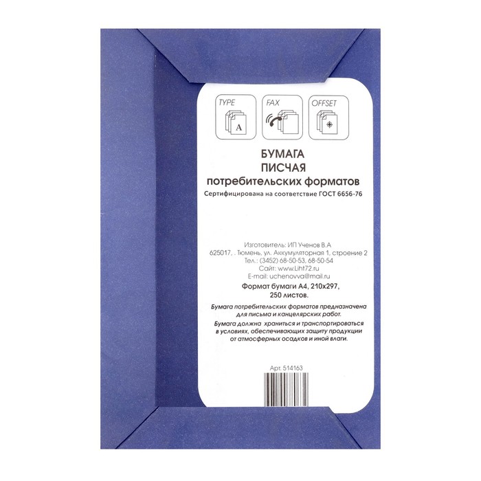 * Бумага формата А4, 250 листов, плотность 65 г/м².