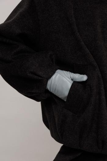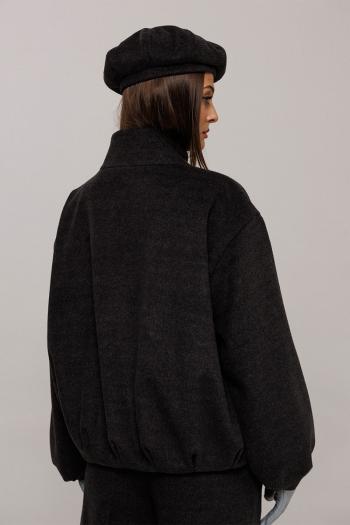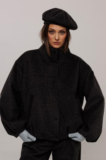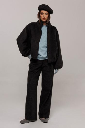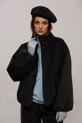 Куртка из пальтовой ткани прямого силуэта со спущенной линией плеча. Рукав втачной одношовнный внизу со складками. Полочка с центральной застежкой на кнопки и карманом-листочкой. Полочка и спинка внизу со складками. По горловине воротник-стойка с застежкой на кнопку. Куртка на подкладке. Комментарии к товару