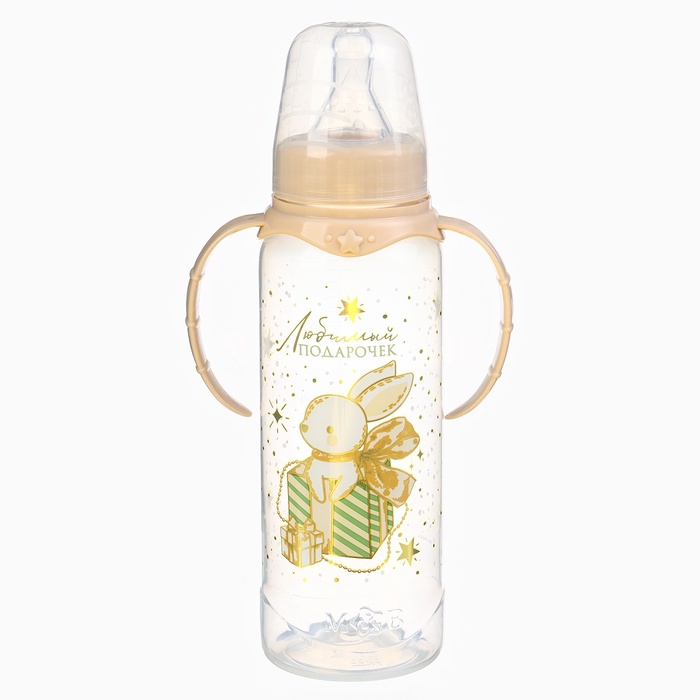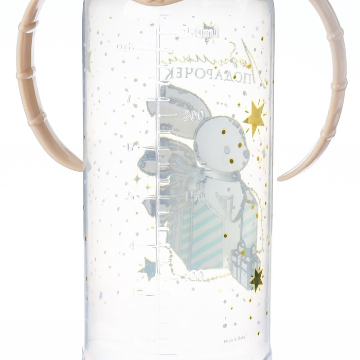 Прекрасный новогодний подарок для малыша и родителей! Бутылочка из полипропилена мало весит, поэтому её удобно давать ребёнку. Износостойкий материал прослужит около 2 лет.
