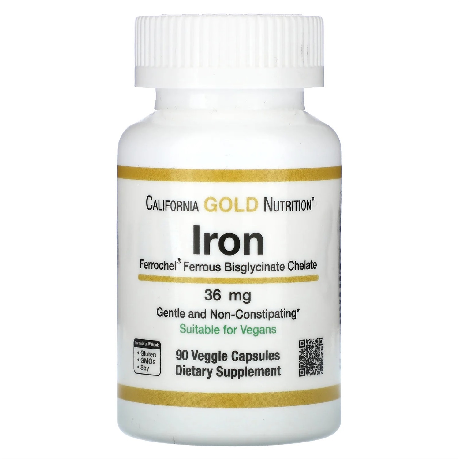 California Gold Nutrition, Ferrochel, железо (бисглицинат), 36 мг, 90 растительных капсул