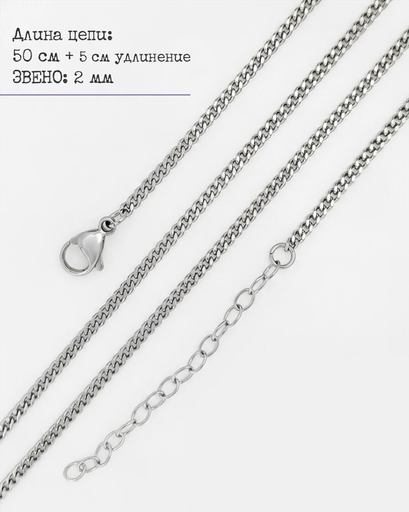 Материал изделия: ювелирный сплав Длина цепи: 50 см + 5 см удлинение Звено цепи: 2 мм Цепочка — идеальный аксессуар на каждый день!Преимущества нашей цепочки: