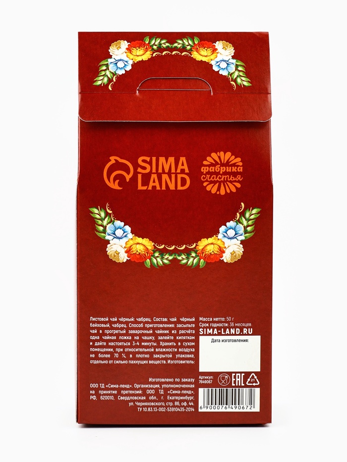 Производитель: Фабрика счастья; Габариты: 5,5 x 8,3 x 16; Страна: Россия; В боксе: 67 шт; Состав: См. на упаковке; Материалы: см. на упаковке; Фасовка: по 1 шт; Индивидуальная упаковка: Термоусадочная пленка; Сертификат: ЕАС; Набор: Нет; Вес нетто, г: 50; Фасовка: Весовой; Вид чая: Чёрный; Тематика праздника: Пасха; Вкус: Чабрец; Подарочный чай: Да; Добавки чая: Чабрец; Вид упаковки: В картонной коробке