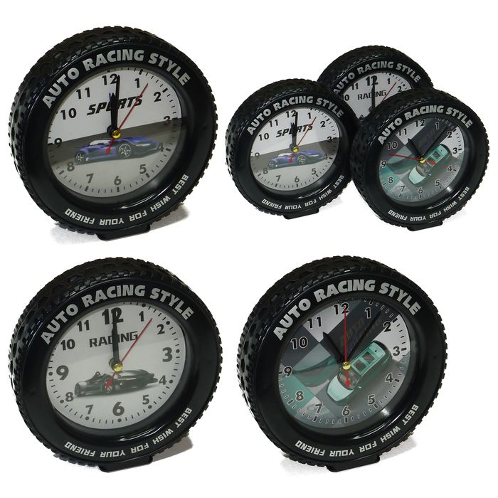 Часы Колесо с будильником Auto Racing Style (1АА б/б) 14*14*4 см