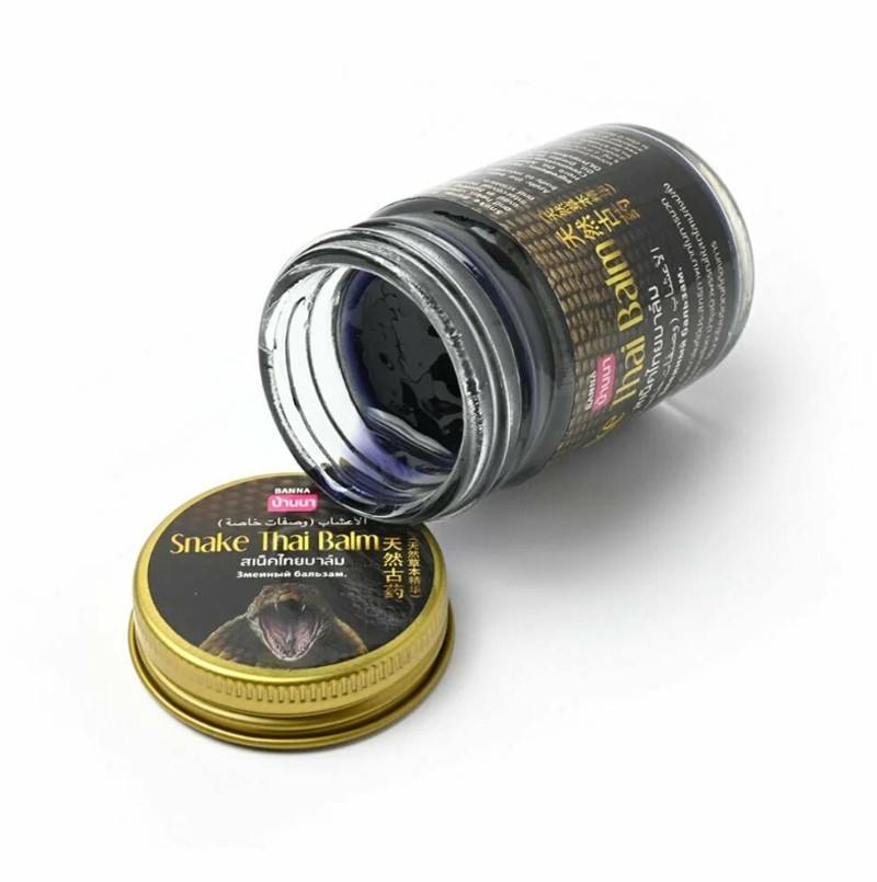 Черный змеиный бальзам Banna — это традиционное тайское средство с мощным согревающим и противовоспалительным эффектом, созданное на основе уникальной формулы лекарственных трав и эфирных масел. Этот бальзам широко применяется для облегчения болей в мышцах и суставах, помогает при остеохондрозе, артритах, радикулите, ревматизме, а также ускоряет восстановление после травм и переломов. Применение: Способ применения: массажными движениями нанести на проблемные места и оставить впитываться. Меры предосторожности: не используйте средство, если оно вызывает покраснение, раздражение, зуд или воспаление кожи, проконсультируйтесь с врачом-дерматологом. Избегайте попадания в глаза, при попадании сразу же промойте глаза водой. Храните в недоступных для детей местах. Не применяйте средство не по назначению. Храните вдали от прямых солнечных лучей при комнатной температуре. Не глотать. Хранить с закрытой крышкой. Не для приема внутрь. Не наносить на открытые раны и слизистые оболочки. С осторожностью при аллергии. Не использовать для детей. Состав: Menthol, Methyl Salicylate, Mentha Citrata Herb Oil, Allantoin, Aqua Borneol, Cetyl Alcohol, Cinnamomum Camphora Leaf Oil,Cymbopogon Nardus Oil, Dmdm Hydantoin,Eucalyptus Globulus Leaf Oil,Propylene Glycol.