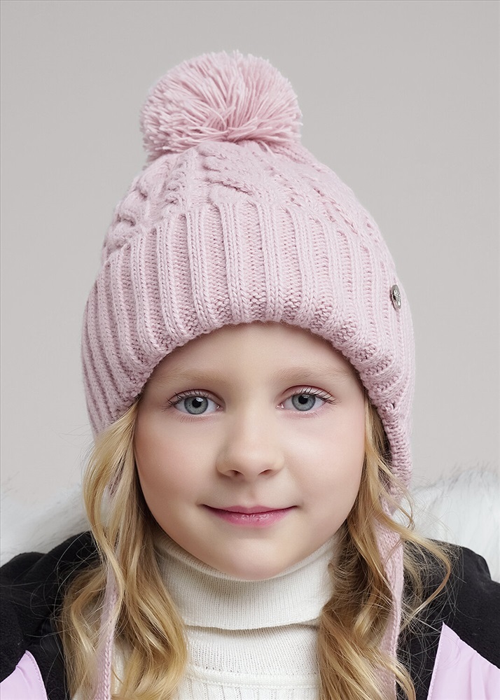 Обхват головы: 48-52 Десткая шапка с ушками и завязками, ниточным помпоном. Декорирована стильной нашивкой. Утеплена флисовым подкладом по всей голове. Идеально подойдёт для холодной зимы
