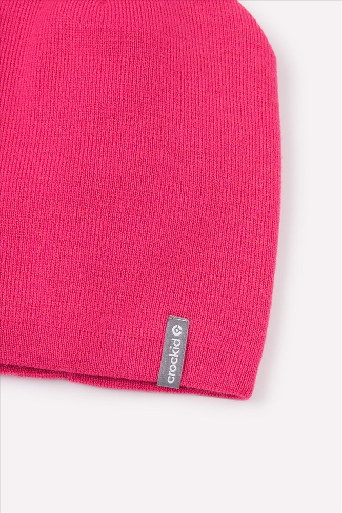 Однотонная розовая шапка из полушерсти. Украшена фирменной жаккардовой нашивкой.