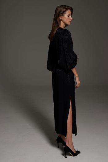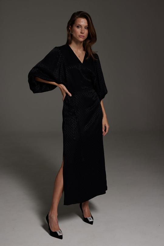 Платье женское приталенного силуэта. Выполнено из шикарного вискозного жаккарда .Распашное на запах, с объемными рукавами и разрезами по боковым швам. Низ рукава обработан эластичной лентой. Комментарии к товару